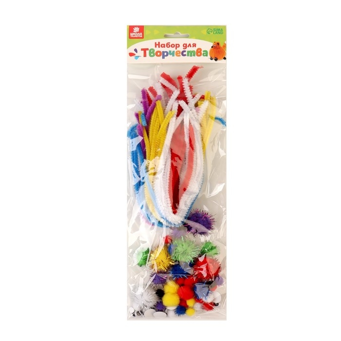 Набор для творчества поможет ребёнку создать пушистую поделку в виде причудливого зверька. Малышу остаётся только придумать, какое животное он будет делать.