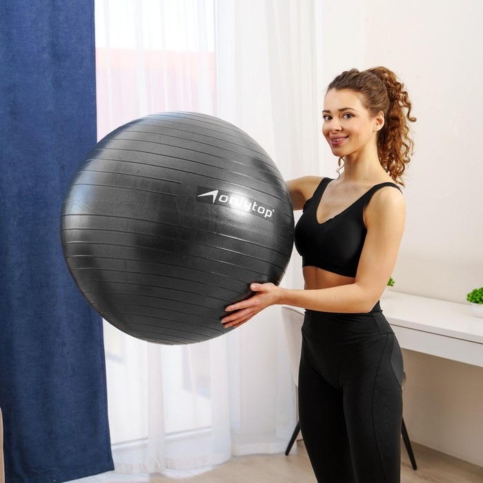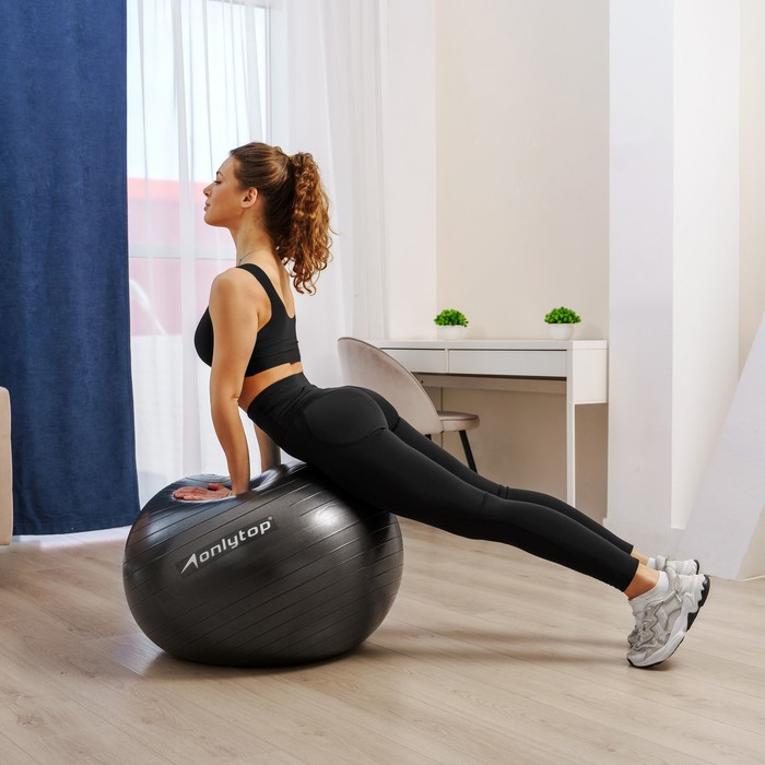 Фитбол, ONLYTOP, d=75 см, 1000 г, антивзрыв, цвет чёрный