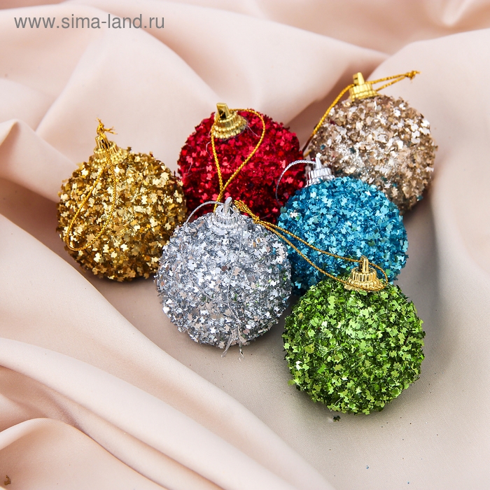 Набор шаров пластик d-4,5 см, 6 шт "Блёстки" микс