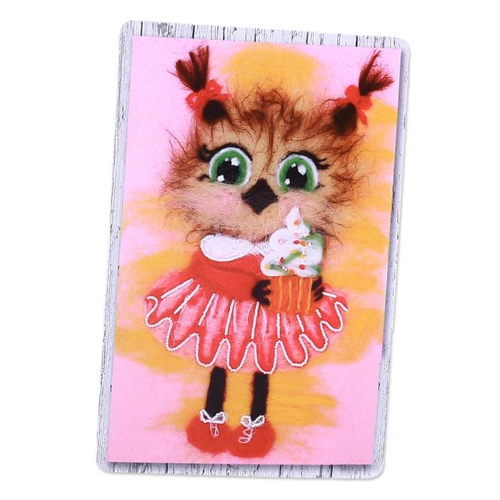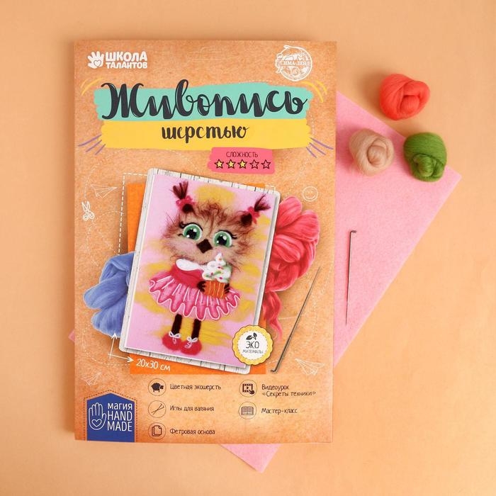 Валяние из шерсти. Картина «Сова с кексом», А4, набор для творчества