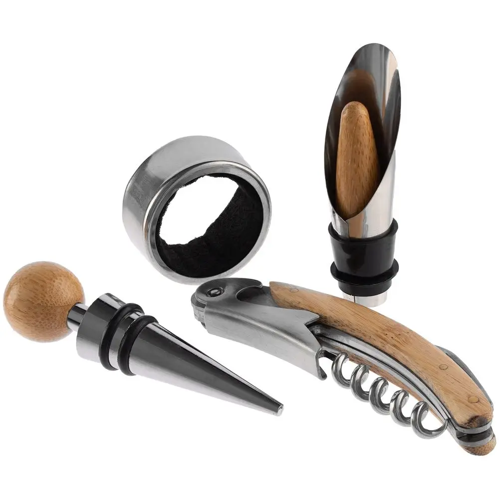 Набор для вина Vinotech с футляром для бутылки — оригинальный и функциональный подарок. Штопор поможет бережно и без усилий откупорить бутылку, а чтобы вино не расплескалось и не оставило пятен, пригодится кольцо-каплеуловитель, надетое на горлышко открытой бутылки: так капли не будут стекать на стол или скатерть. Аэратор поможет аромату вина раскрыться, а винная пробка сохранит свежесть и вкус напитка еще некоторое время после откупоривания бутылки.В наборе: