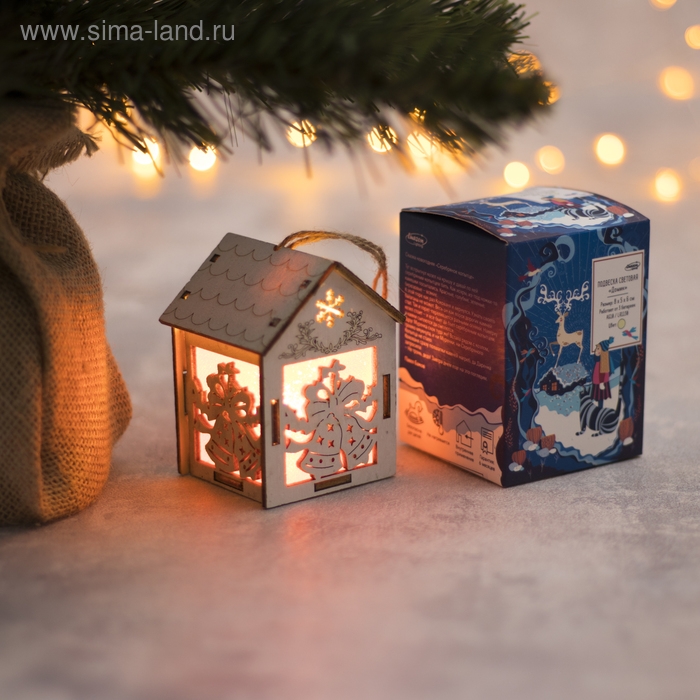Подвеска световая "Дом Снегурочки", 8х4х8.5 см, 1 LED, AG10x3 (в компл.), свечение тёплое белое