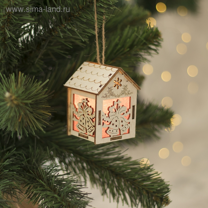 Ёлочная игрушка «Домик с колокольчиками», от батареек, свечение тёплое белое