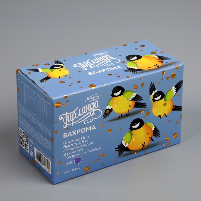 Гирлянда «Бахрома» 1.8 × 0.5 м, IP20, прозрачная нить, 48 LED, свечение фиолетовое, 8 режимов, 220 В