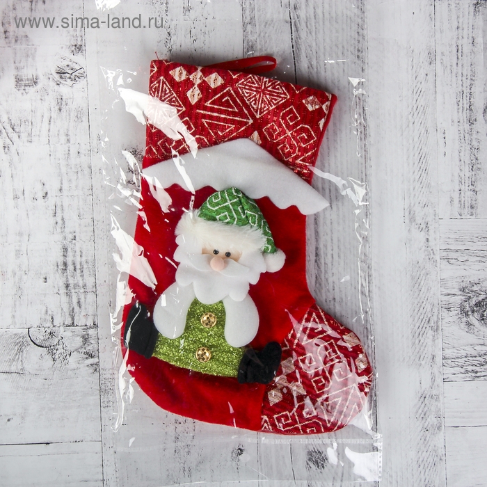 Носок для подарков "Снежный дом" Дед Мороз, 19х26 см, красный