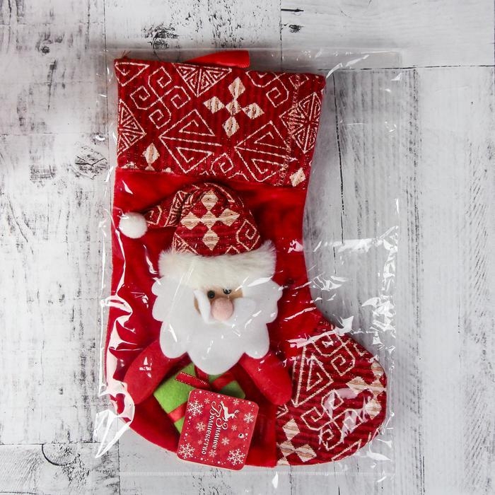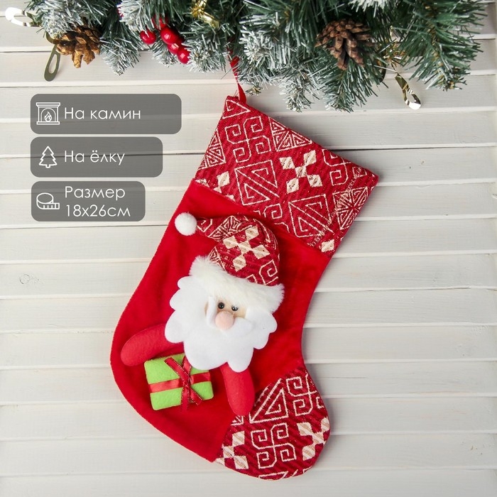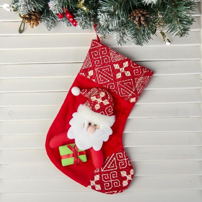 Носок для подарков "Подарочек" Дед Мороз, 18,5х26 см, красный