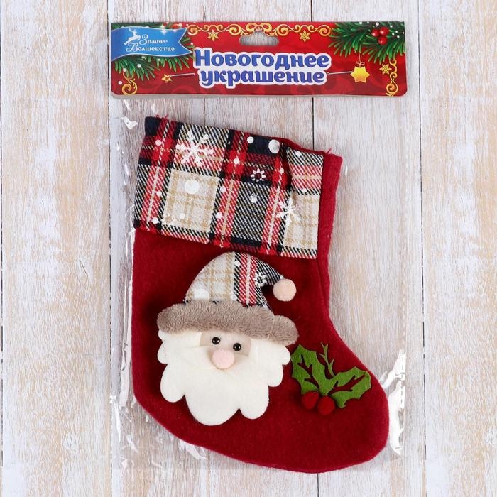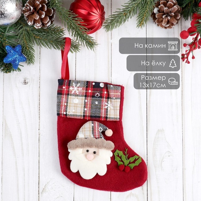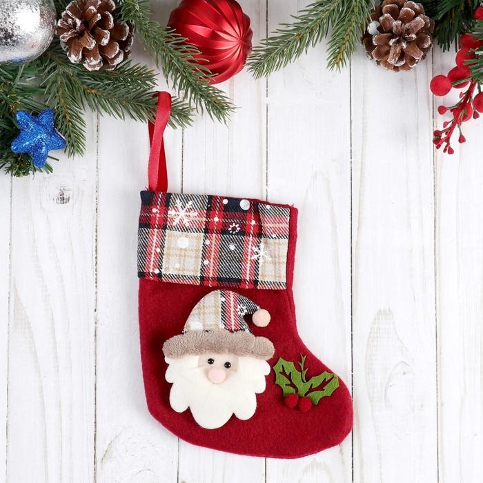 Носок для подарков "Рождественская песня" Дед Мороз, 13х17 см, красный