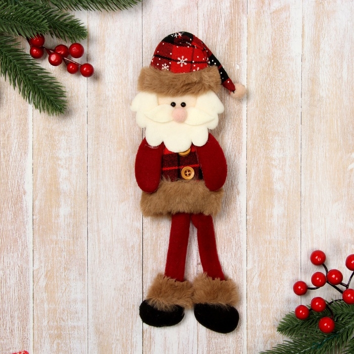 Мягкая игрушка "Дед Мороз в клетку" 8х30 см, красный