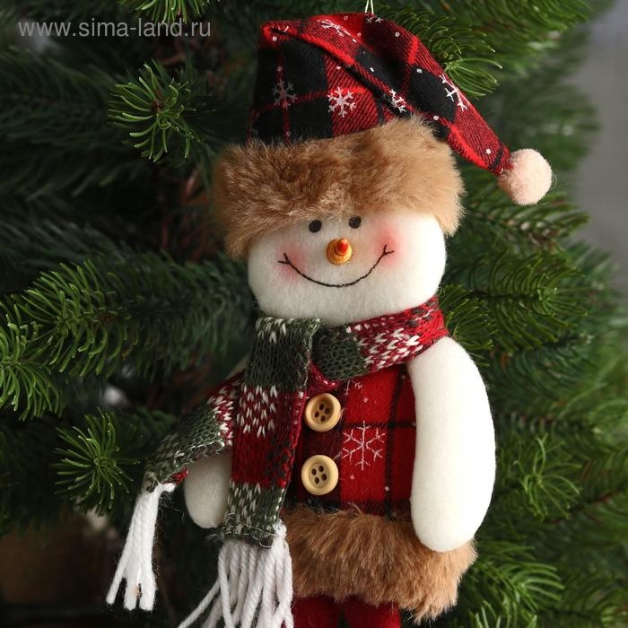 Мягкая игрушка "Снеговик в клетку" 8х29 см, красно-коричневый