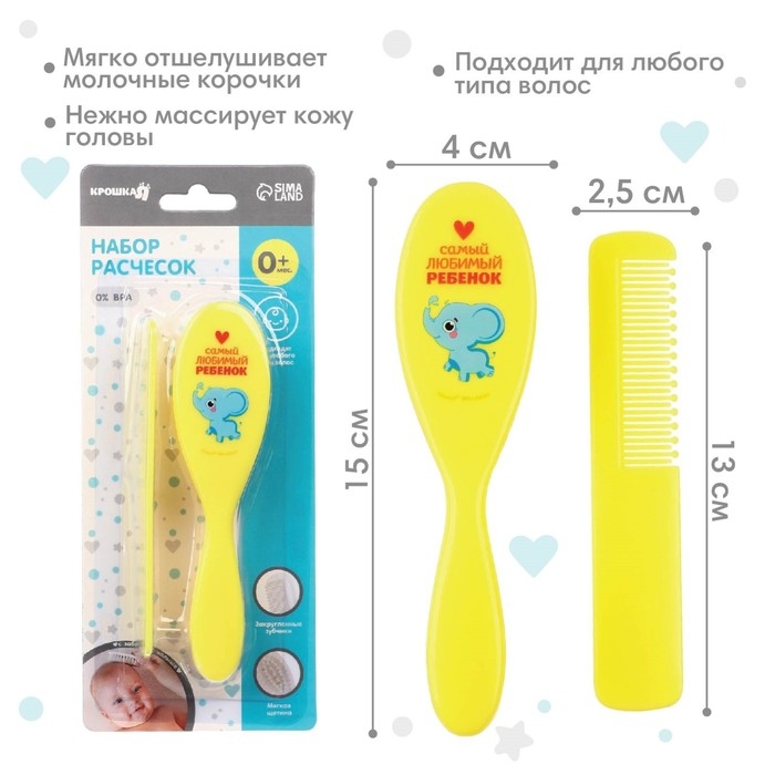 Расчёска детская + массажная щётка для волос «Любимый ребёнок», от 0 мес.