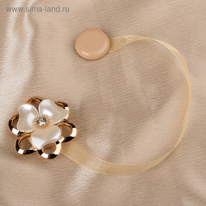 Подхват для штор «Цветок перламутровый», d = 5,5 см, цвет молочный/золотой