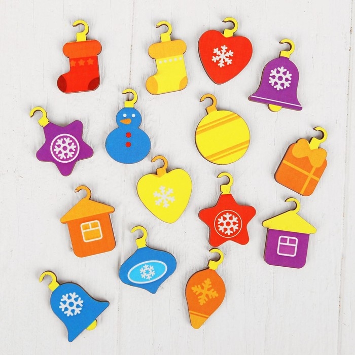 Поместите штырьки в специальные отверстия и наряжайте ёлку вместе с малышом. Занятия с такой игрушкой способствуют развитию мелкой моторики, а значит и мышления.