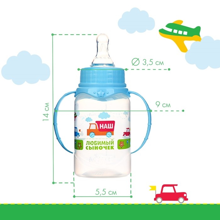Бутылочка для кормления с ручками «Сыночек», классическое горло, 150 мл., от 0 мес., цвет голубой