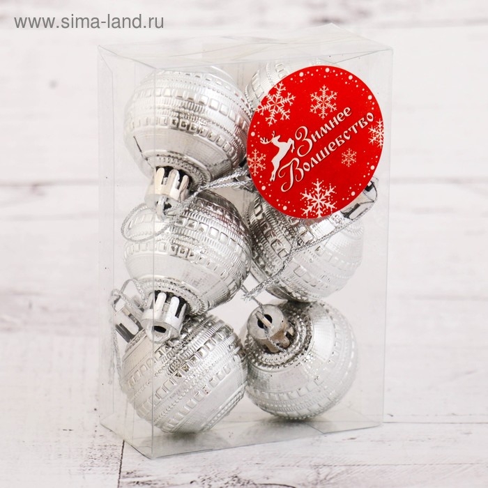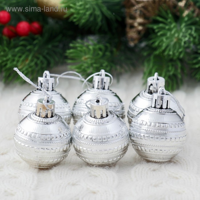 Набор шаров пластик d-4 см, 6 шт "Бусинка" серебро