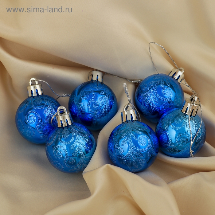 Набор шаров пластик d-4 см, 6 шт "Морозная зима" синий