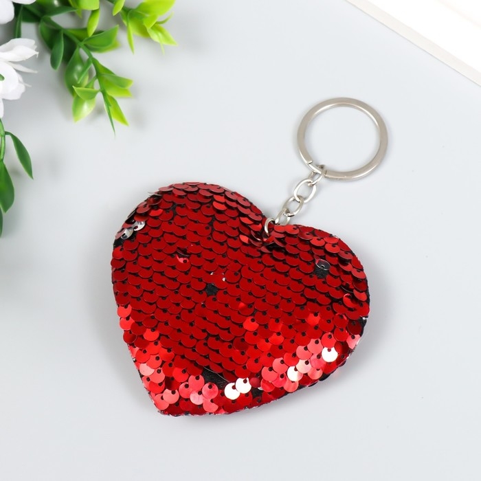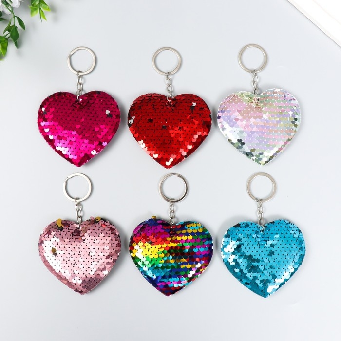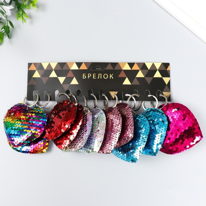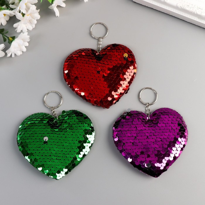 Брелок текстиль пайетки "Сердечко" МИКС 9х8 см