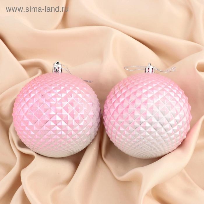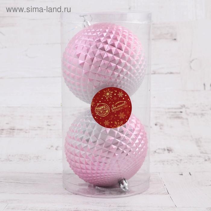 Набор шаров пластик d-10 см, 2 шт "Рельеф" розовый