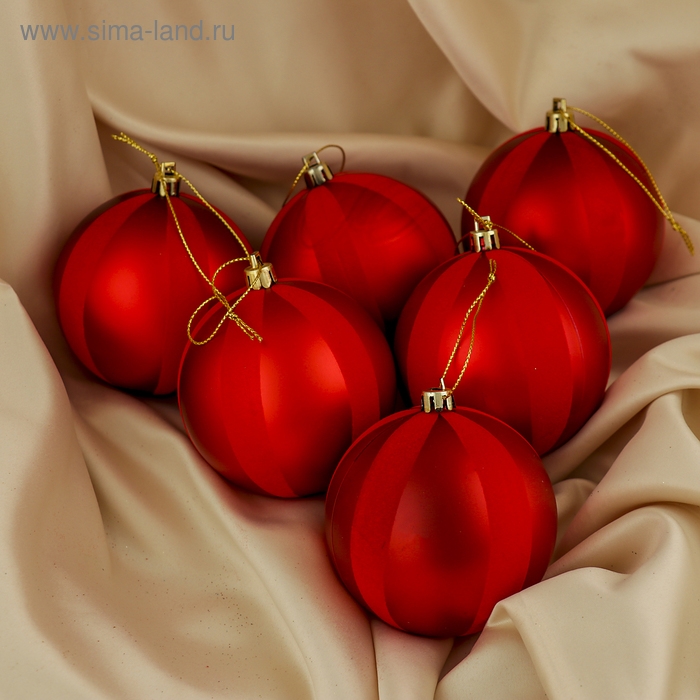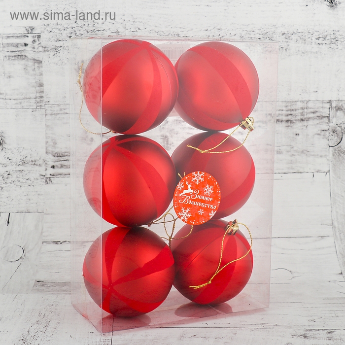 Набор шаров пластик d-8 см, 6 шт "Бархат" красный