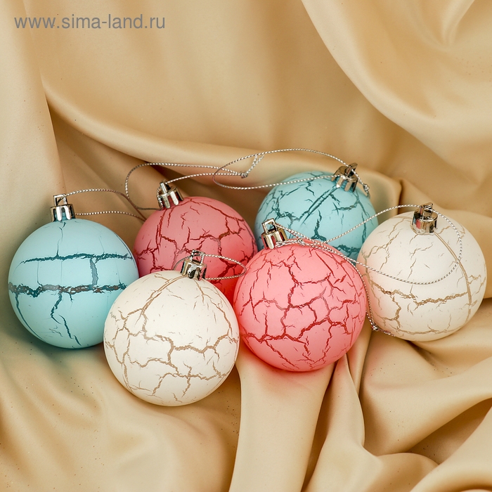 Набор шаров пластик d-6 см, 6 шт "Кракле" микс