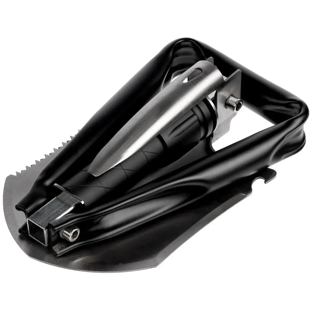 Такой инструмент полезно иметь на даче или возить в багажнике машины. Многофункциональная складная лопата может стать незаменимым помощником во время кемпинга; ее можно использовать как мотыгу или кирку, в качестве лома, пилы, гвоздодера и даже открывашки для бутылок.Защитный чехол в комплекте.