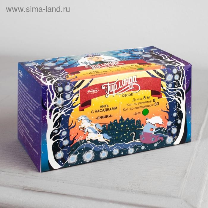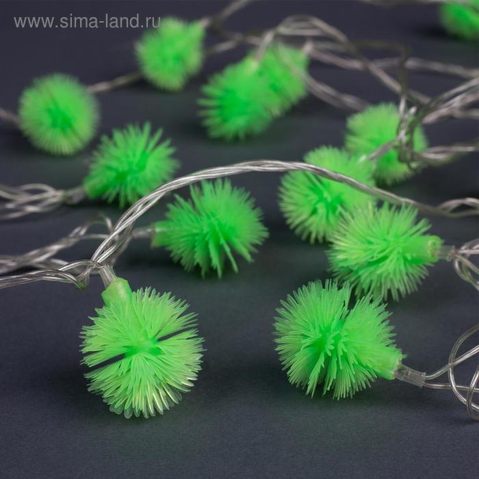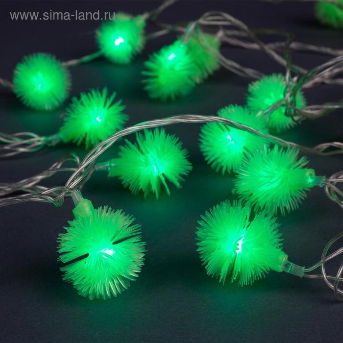 Гирлянда «Нить» 5 м с насадками «Ёжики зелёные», IP20, прозрачная нить, 30 LED, свечение зелёное, 8 режимов, 220 В
