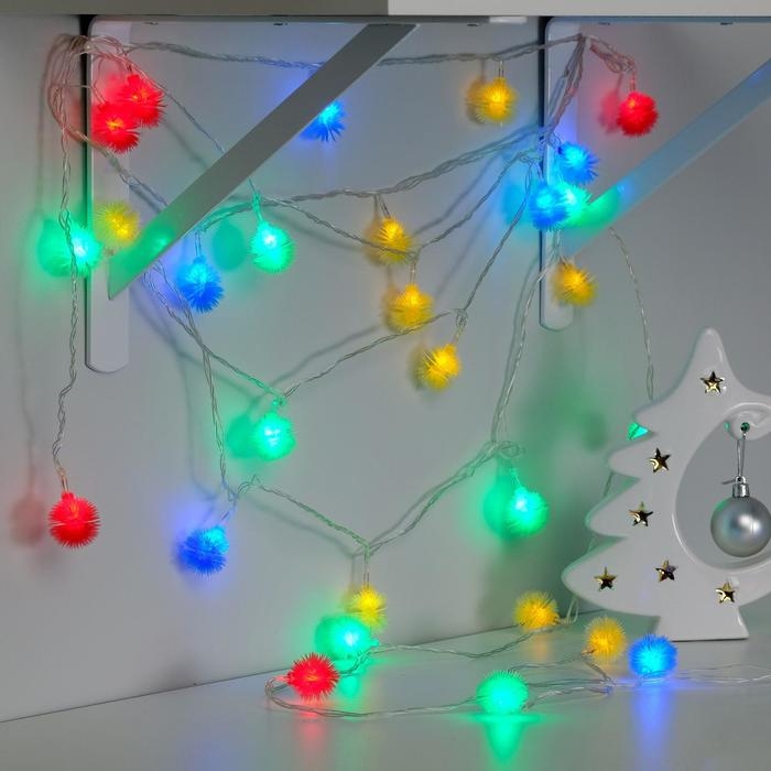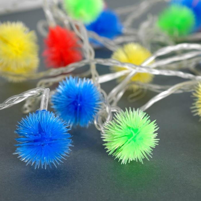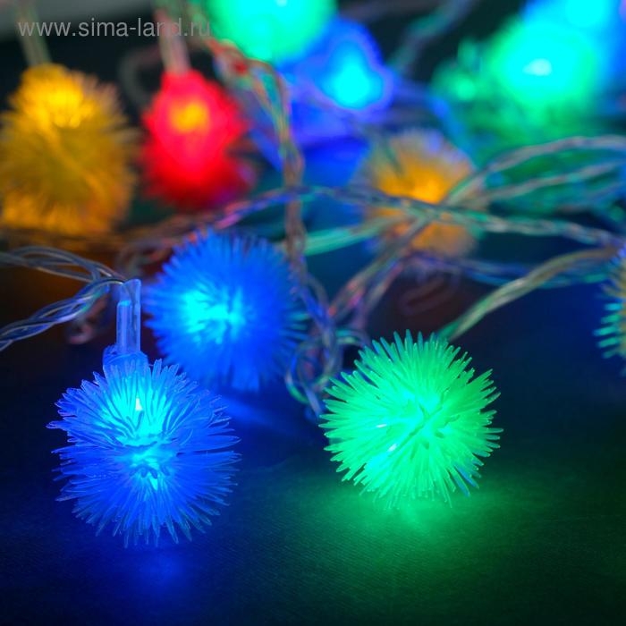 Гирлянда «Нить» 5 м с насадками «Ёжики цветные», IP20, прозрачная нить, 30 LED, свечение мульти, 8 режимов, 220 В