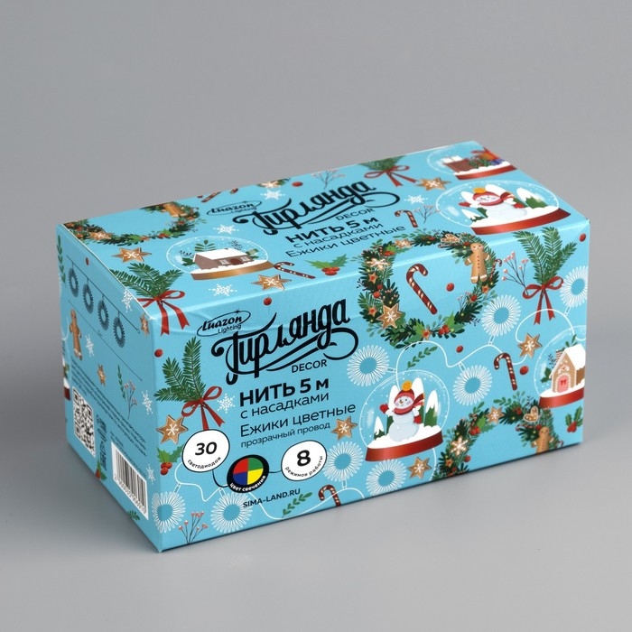 Гирлянда «Нить» 5 м с насадками «Подарки», IP20, прозрачная нить, 20 LED, свечение мульти (RG/RB), мигание, 220 В