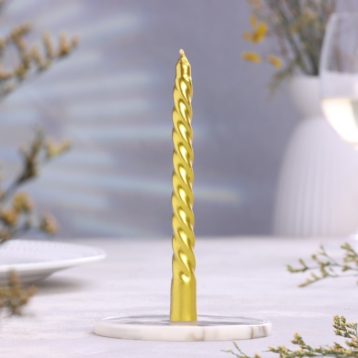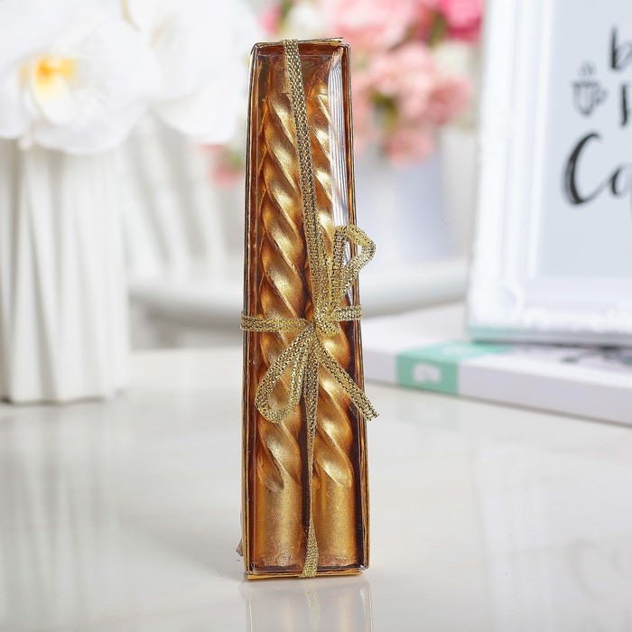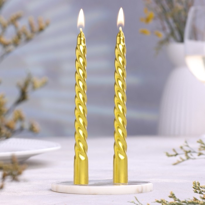 Набор свечей витых, 1.5х15 см, 2 штуки, золотой металлик