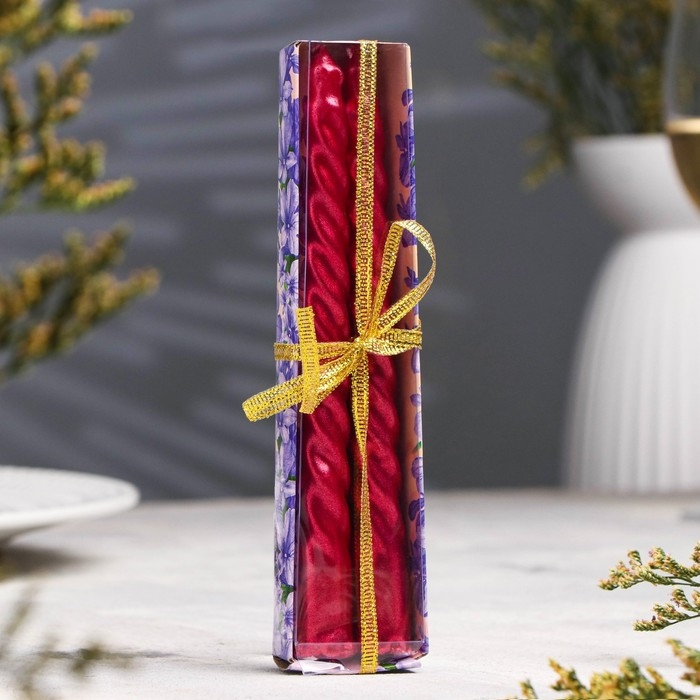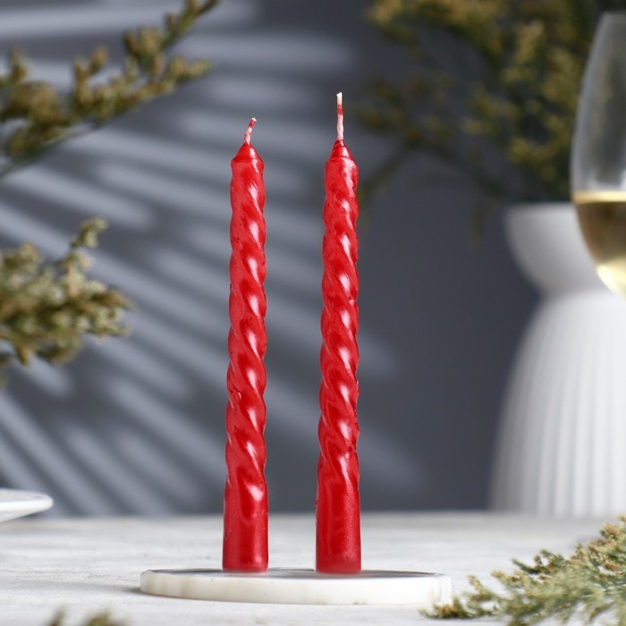 Набор свечей витых, 1,5х 15 см, 2 штуки, рубиновый металлик