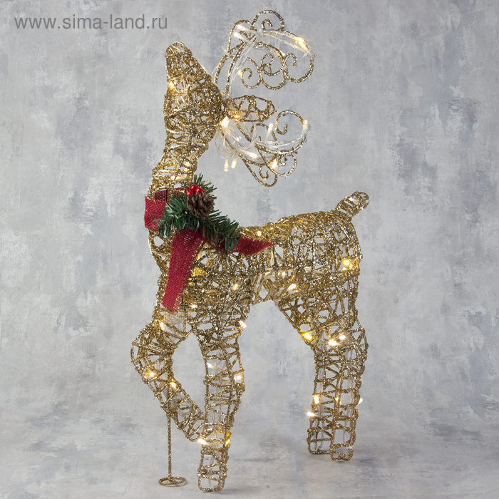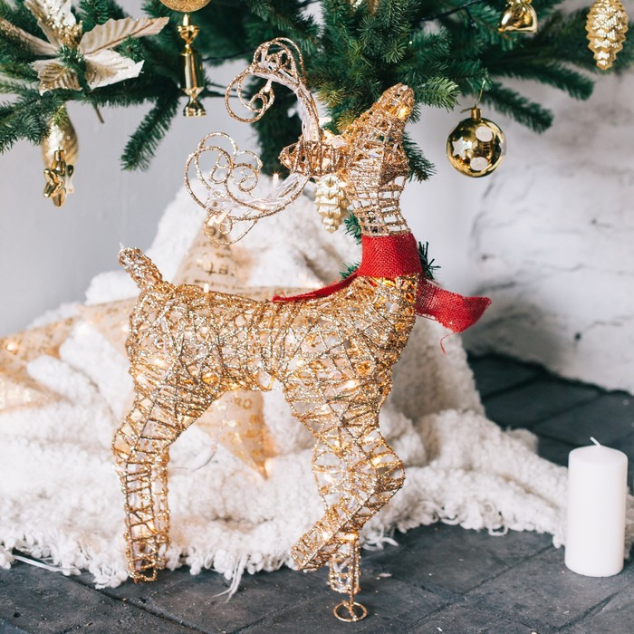 Светодиодная фигура «Олень золотистый» 40 × 60 × 18 см, металл, 220 В, свечение тёплое белое