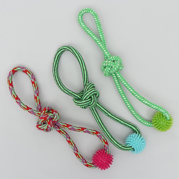 Игрушка канатная "Массажная" с узлом, до 65 г, до 30 см, микс цветов