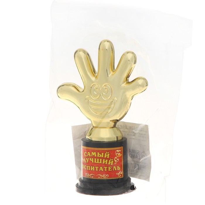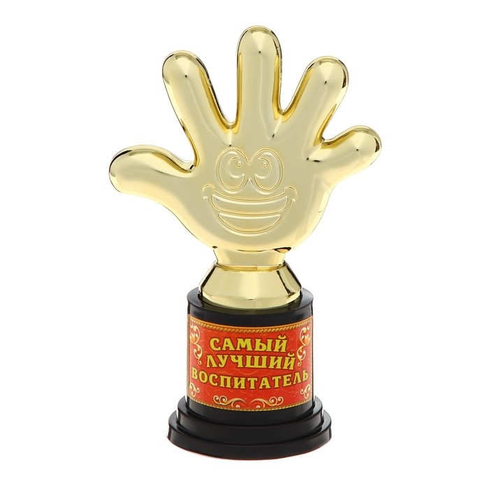 Наградная фигура «Самый лучший воспитатель», пятерня, кубок, пластик, золото, 6,5 х 10,5 х 4 см.