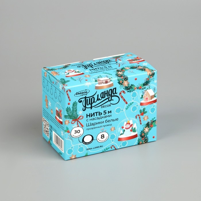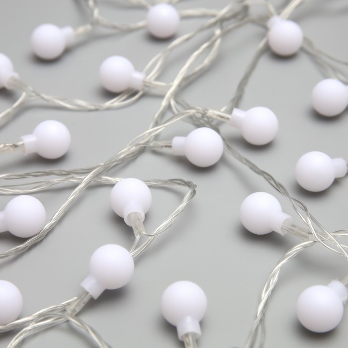 Гирлянда «Нить» 5 м с насадками «Шарики белые», IP20, прозрачная нить, 30 LED, свечение белое, 8 режимов, 220 В