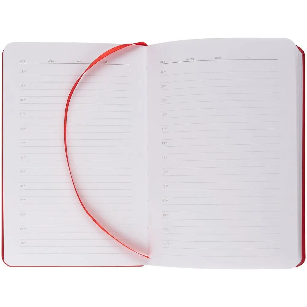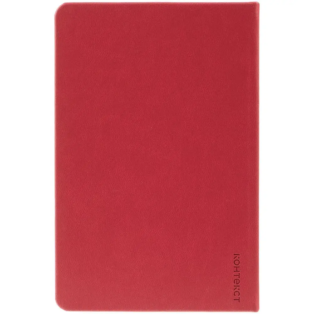 Ежедневник с твердой обложкой, выполнен из материала Latte, красный РР, дополнен ляссе в цвет обложки.