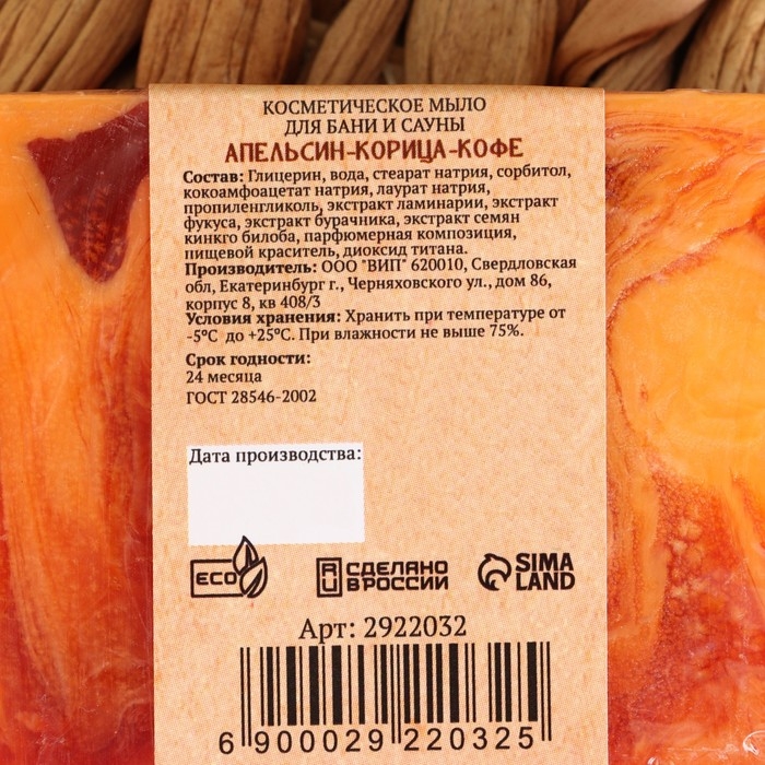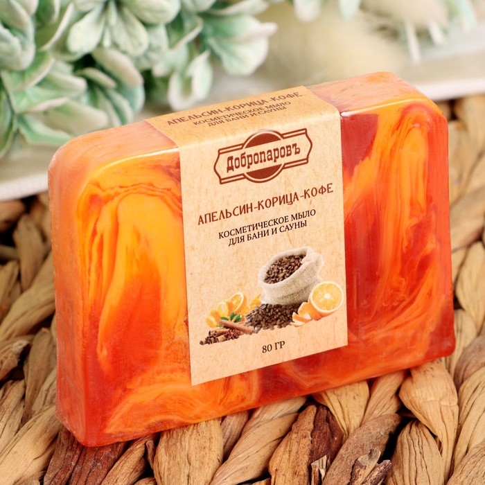 Мыло СПА - уход для бани и сауны "Апельсин — Корица — Кофе" Добропаровъ РУЧНАЯ РАБОТА 80 гр