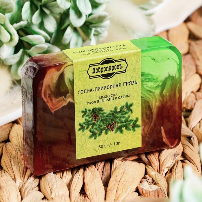 Мыло СПА - уход для бани и сауны "Сосна — Природная грязь" Добропаровъ РУЧНАЯ РАБОТА 80 гр
