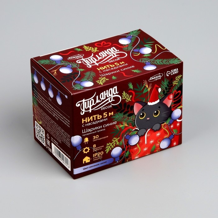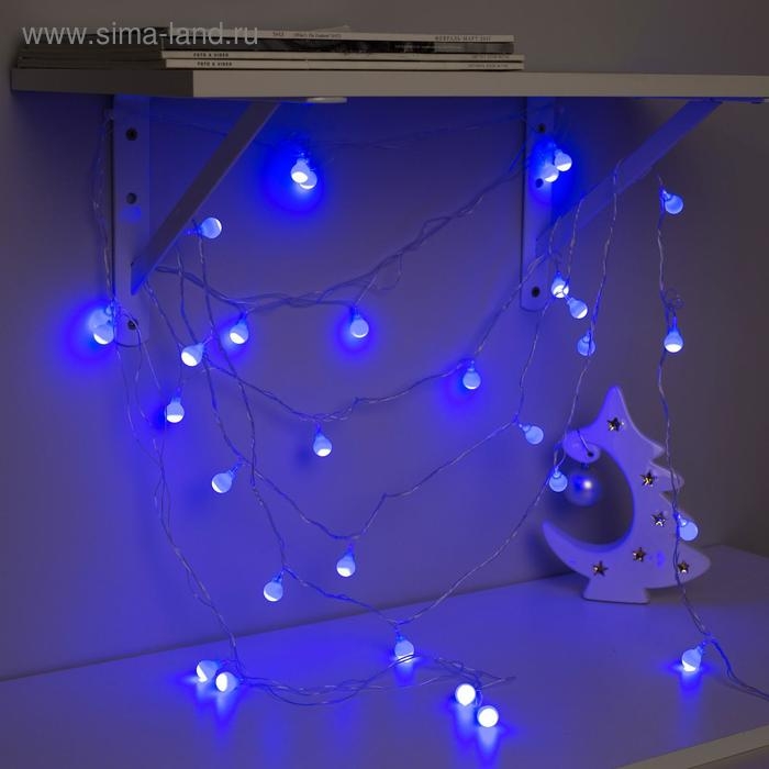 Гирлянда «Нить» 5 м с насадками «Шарики синие», IP20, прозрачная нить, 30 LED, свечение синее, 8 режимов, 220 В