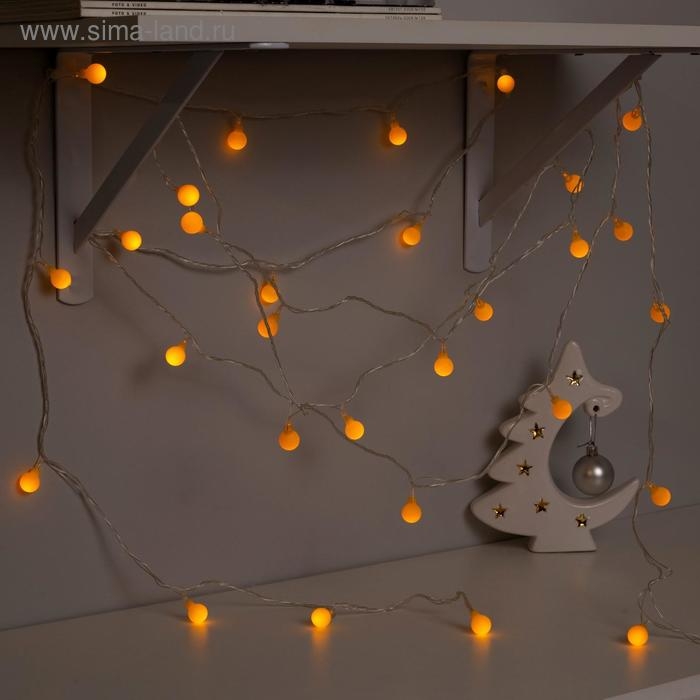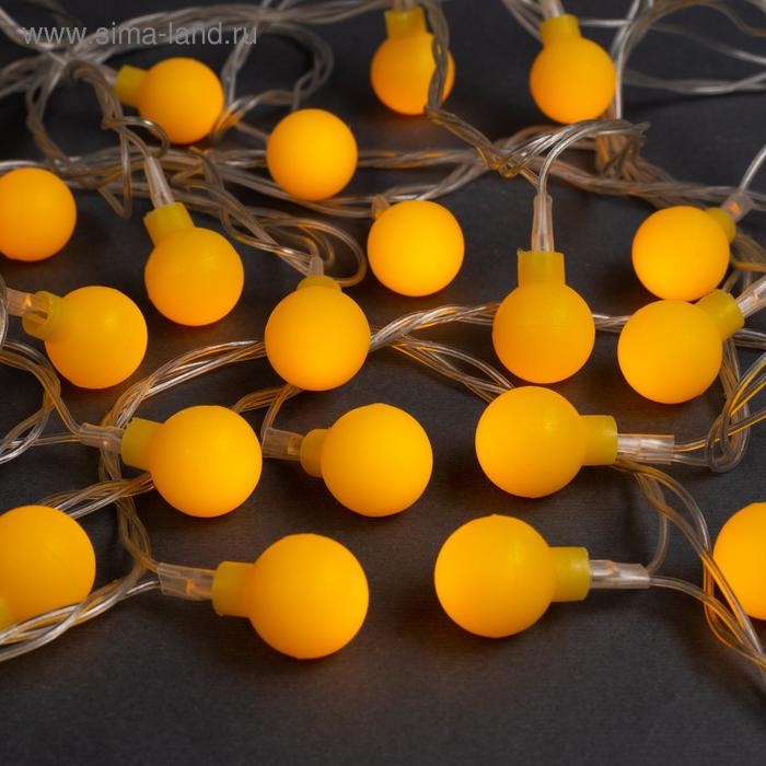 Гирлянда «Нить» 5 м с насадками «Шарики жёлтые», IP20, прозрачная нить, 30 LED, свечение жёлтое, 8 режимов, 220 В