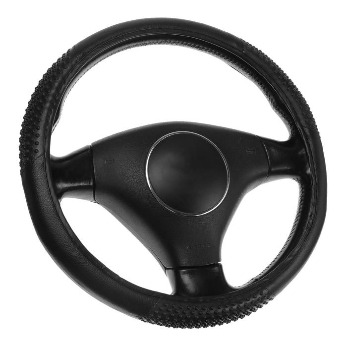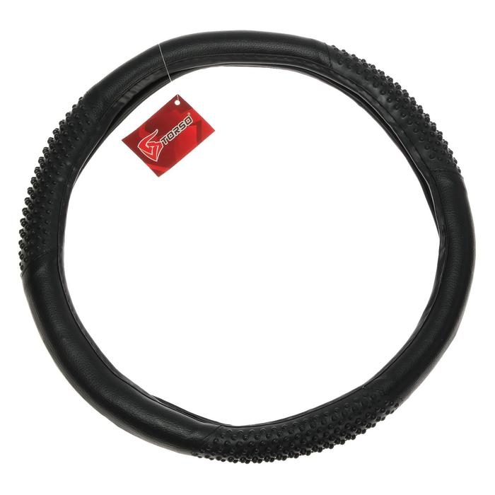 Оплетка на руль TORSO, кожа PU, 3 массажные вставки, 38 см, черный