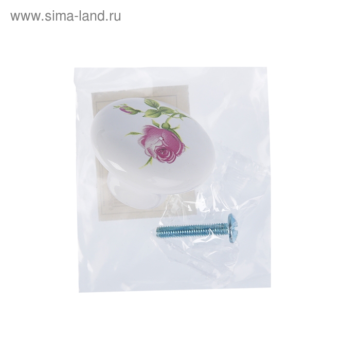 Ручка кнопка FLOWER Ceramics 004, d=38, керамическая, белая с рисунком