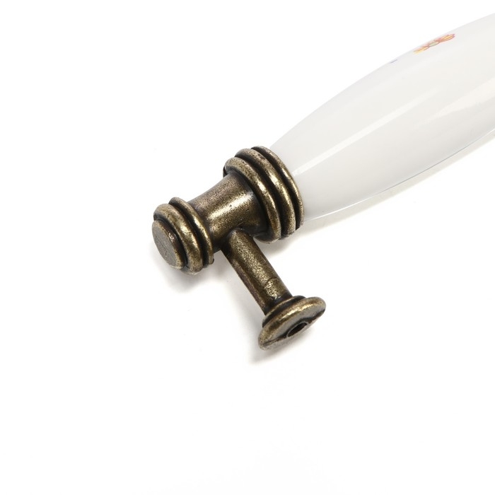 Интересный дизайн ручки сочетается с различными типами мебельного гарнитура. Фурнитура имеет привлекательный внешний вид и компактный размер. Бронзовый оттенок металла в сочетании с белоснежной керамикой идеально подходит к мебельным фасадам в различной цветовой гамме.