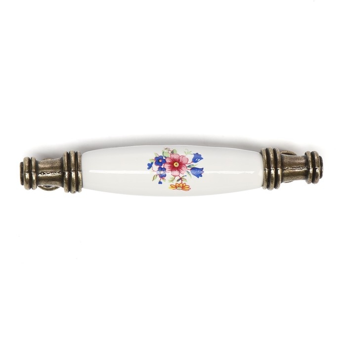 Ручка скоба FLOWER Ceramics изготовлена в дизайнерском стиле из металла с керамической вставкой.