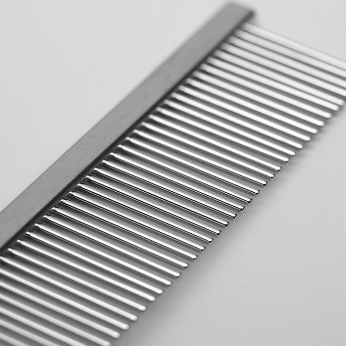 Расческа предназначена для тщательного ухода за шерстью кошек и собак. Она легко удаляет частички пыли и грязи с шерсти животного, не повреждая поверхность кожи и не травмируя структуру шерсти.