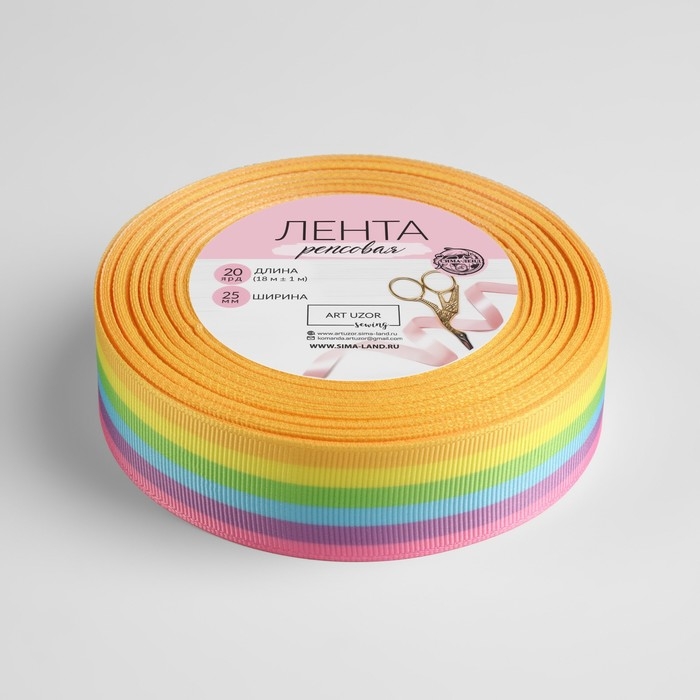 Лента репсовая «Радуга», 25 мм, 18 ± 1 м, цвет МИКС