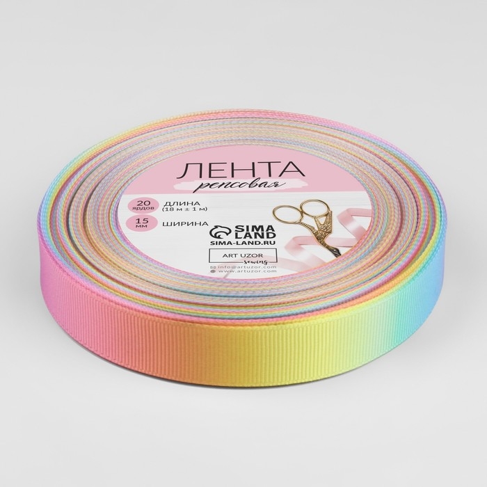 Лента репсовая «Радуга», 15 мм, 18 ± 1 м, разноцветная
