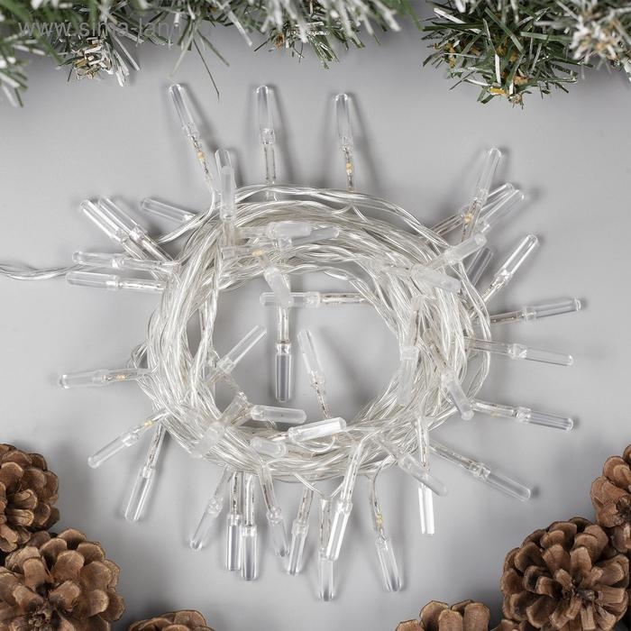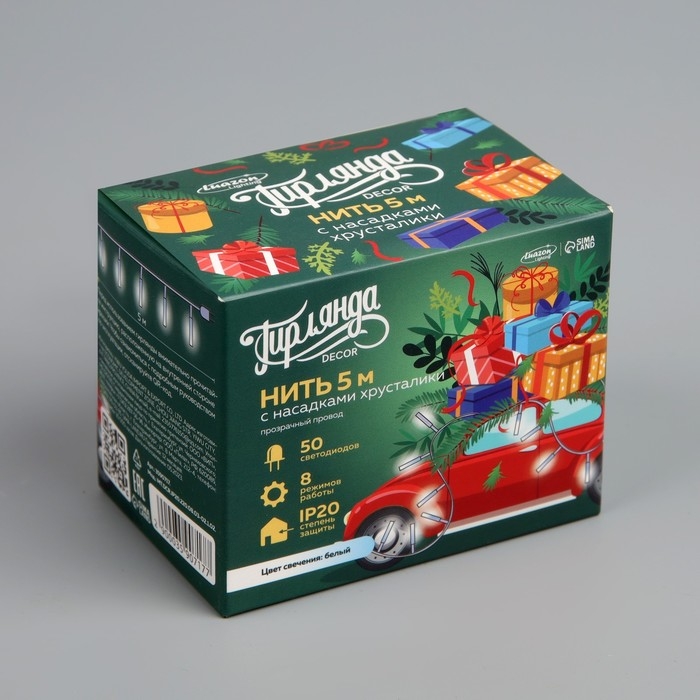 Гирлянда «Нить» 5 м с насадками «Хрусталики», IP20, прозрачная нить, 50 LED, свечение белое, 8 режимов, 220 В