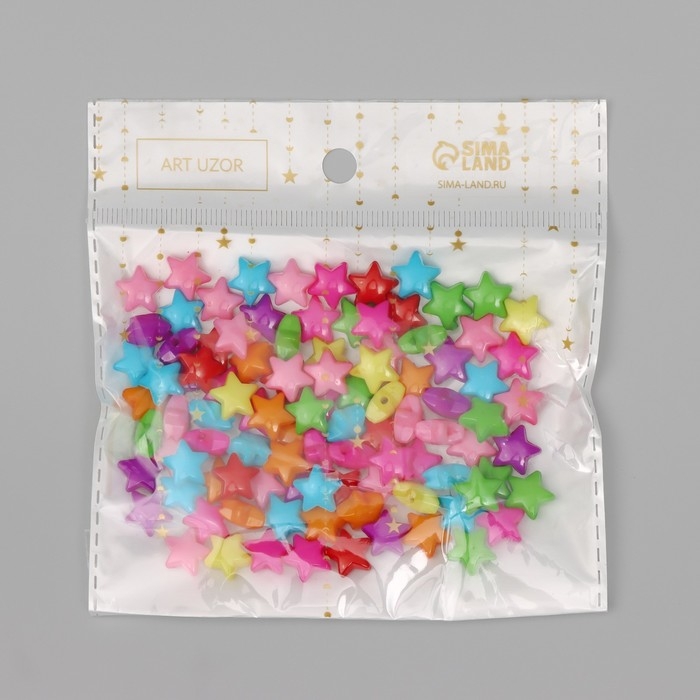 Бусины для творчества пластик "Звёздочки" цветные набор 100 шт 1,1х1,1 см