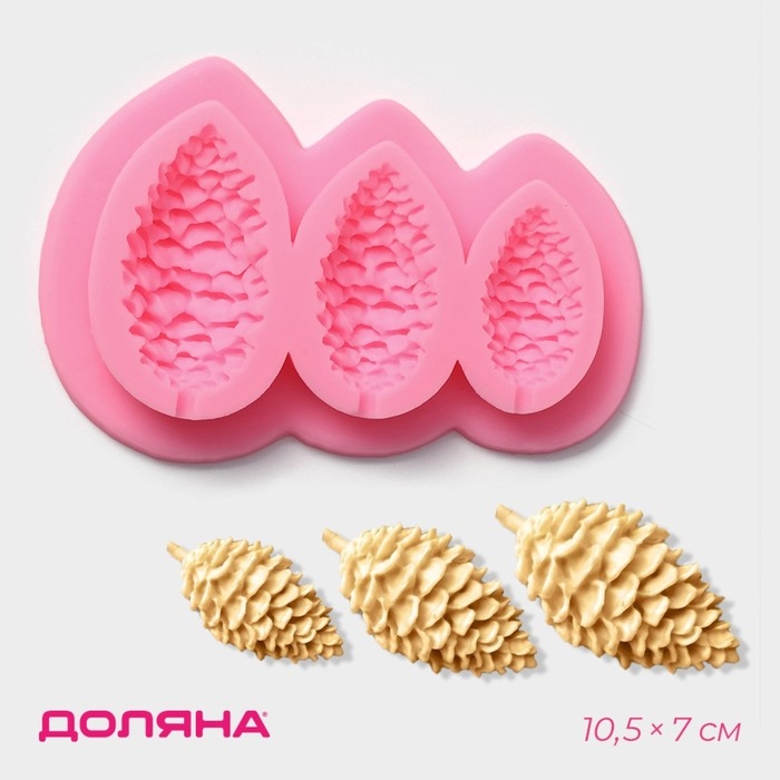 Молд новогодний «Шишки», силикон, 10,5×7 см, цвет розовый
