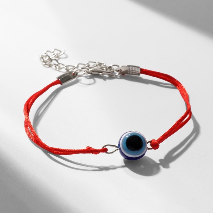 Браслет-оберег «Красная нить» талисман защиты, бусинка с глазиком, цвет синий с серебром, 18 см