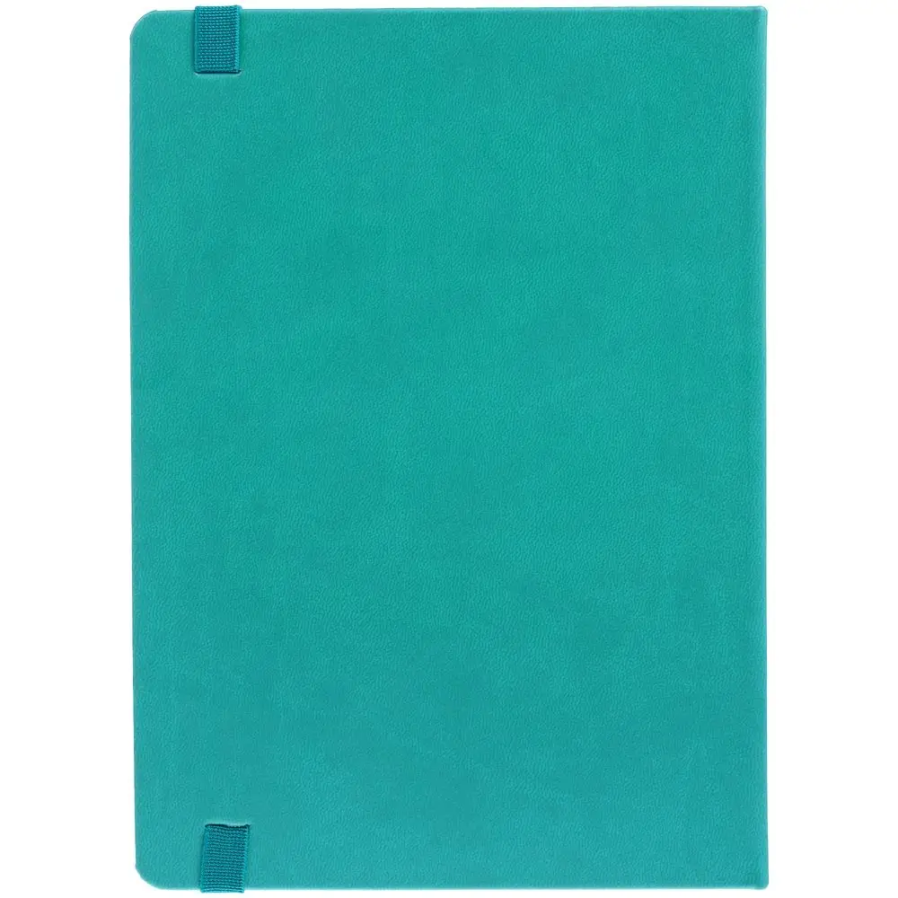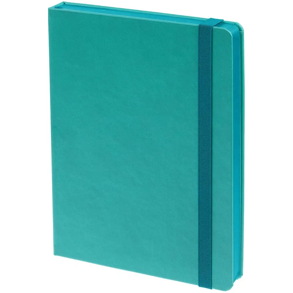 Ежедневник с твердой обложкой, выполнен из материала Latte, цвет морской волны II, обрез бирюзового цвета, дополнен резинкой и ляссе бирюзового цвета.